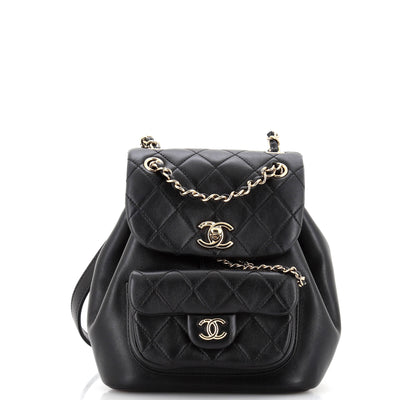 CHANEL Double Pocket Drawstring Quilted Calfskin Small