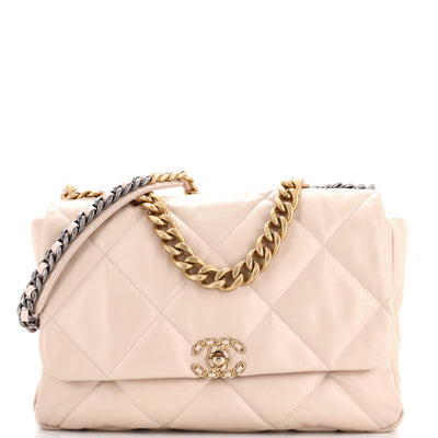 CHANEL Quilted Lambskin and Printed Silk Medium