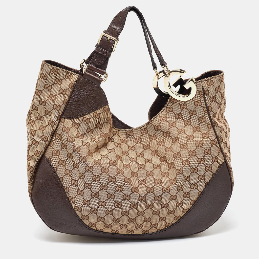 Explore the Gucci Beige/Brown GG Canvas and Leather Charlotte Hobo, a stunning blend of style and practicality. This designer luxury handbag features a chic GG canvas design, complemented by premium leather accents for durability and elegance. Ideal for everyday use, it offers ample space for your essentials while elevating your look. For savvy shoppers, our price comparison platform helps you find the best deals on luxury handbags online. Trust in Gucci's renowned reputation for quality and craftsmanship as you browse our trusted site, ensuring you make an informed purchase. Discover the perfect balance of luxury and affordability today.