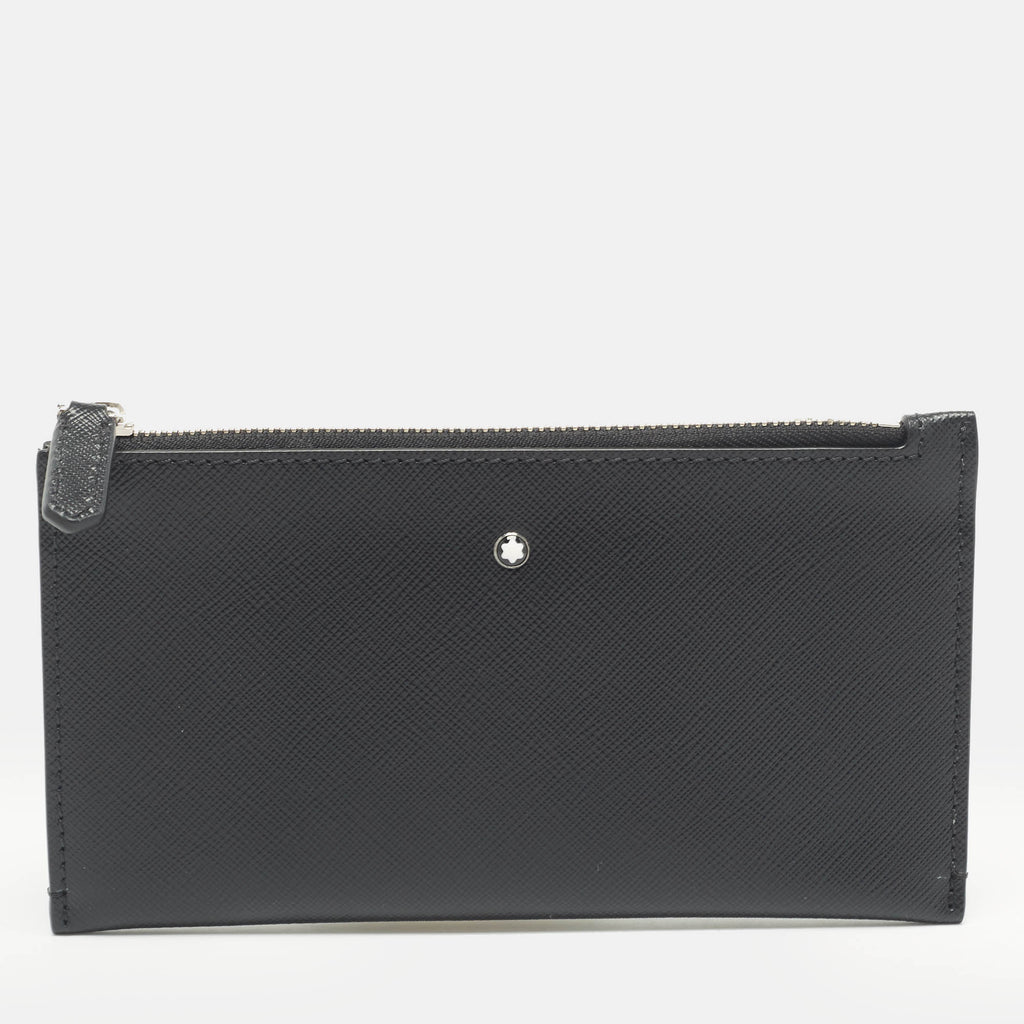 Q: What are the functional features of the Montblanc Black Leather Mini Sartorial Pouch?