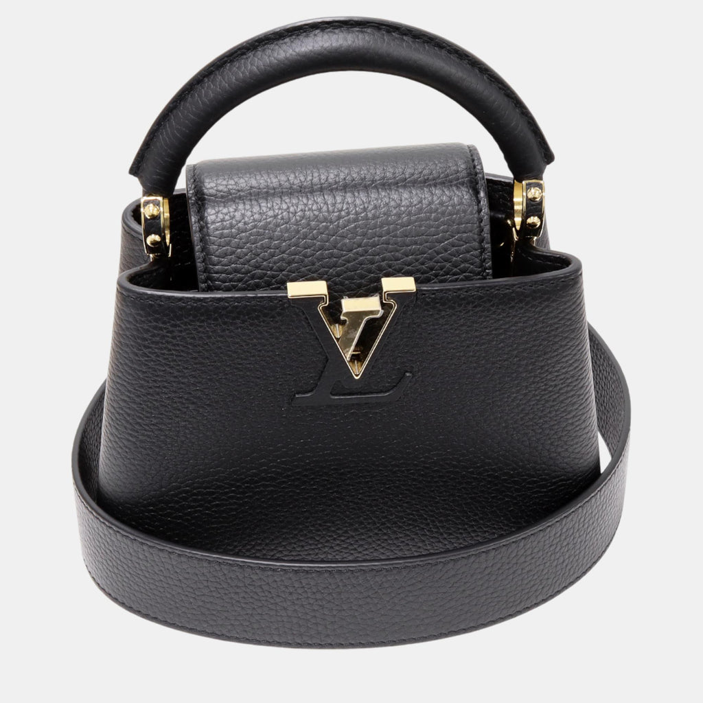 Discover the elegance of Louis Vuitton Black Taurillon Leather Capucines Mini Top Handle Bags, a perfect blend of style and practicality. Crafted from premium Taurillon leather, this designer luxury handbag features a timeless design that elevates any outfit. Enjoy the brand's renowned quality and reputation, ensuring your investment lasts. When you buy luxury handbags online, use our price comparison platform to find the best deals available. Our site provides trusted information and expert insights, helping you make informed choices. Experience the sophistication of Louis Vuitton while saving money with our reliable price comparisons for designer luxury handbags.