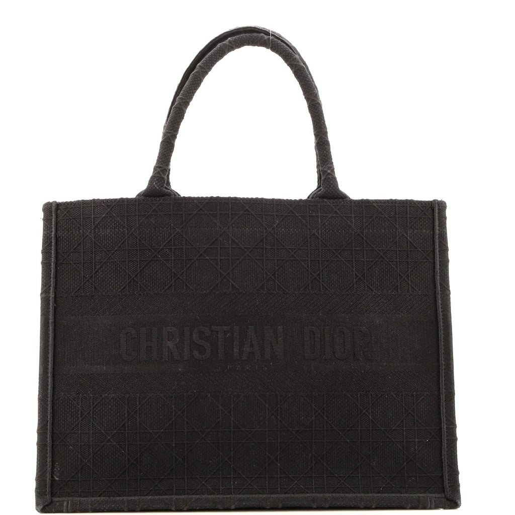 A: The Christian Dior Book Tote Cannage Embroidered Canvas Medium is crafted from high-quality canvas, featuring the iconic Cannage stitching that is synonymous with the Dior brand. This luxurious fabric is both durable and stylish, making it a perfect choice for everyday use and special occasions.