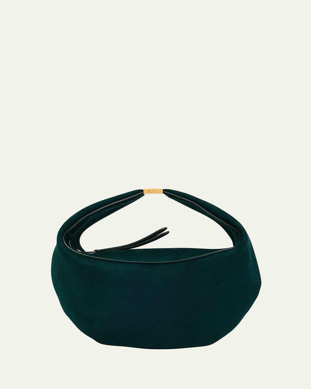 Q: What are the functional aspects of the Khaite Olivia Small Suede Shoulder Bag?