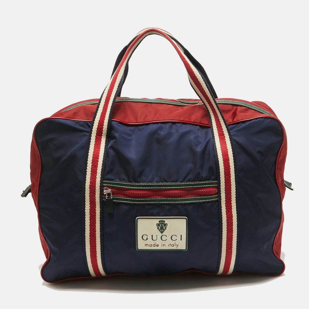 Discover the Gucci Red/Dark Blue Nylon Logo Travel Bag, a perfect blend of style and practicality. Crafted from high-quality nylon, this designer luxury handbag features a striking logo design that elevates any travel ensemble. Ideal for the modern traveler, it combines ample storage with a chic aesthetic. For those looking to buy luxury handbags online, our price comparison platform ensures you find the best deals available. Trust in Gucci's renowned reputation for quality and craftsmanship. Explore our site for expert insights and authentic information, making your shopping experience both reliable and rewarding. Elevate your travel style with Gucci today!