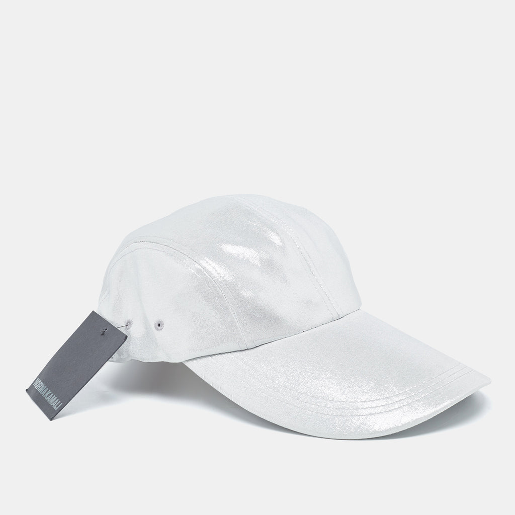 Q: What unique features does the Norma Kamali Silver Lame Baseball Cap offer?