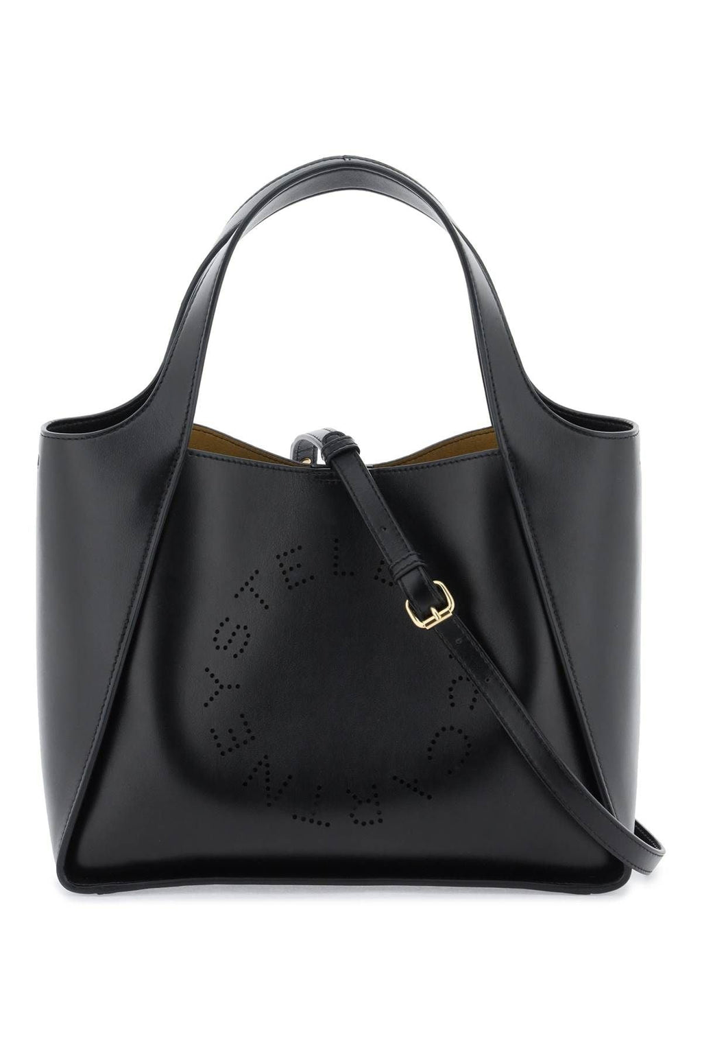 Q: What unique features does the Stella McCartney Stella Logo Tote Bag offer?