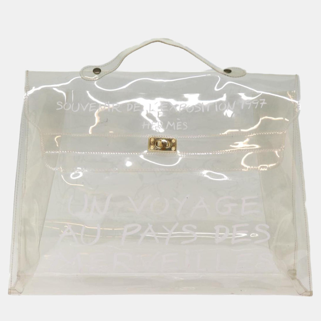 Discover the Hermès Transparent Vinyl Kelly Top Handle Bag, a stunning piece in the world of designer luxury handbags. Crafted from high-quality materials, this bag seamlessly combines elegance and practicality, perfect for any occasion. When you buy luxury handbags online, ensure you make informed choices with our price comparison platform, helping you find the best deals. Hermès is renowned for its craftsmanship and timeless designs, making this bag a worthy investment. Our site offers trusted information to guide your purchase, ensuring you get quality and style. Elevate your accessory collection with this iconic handbag that embodies luxury and sophistication.