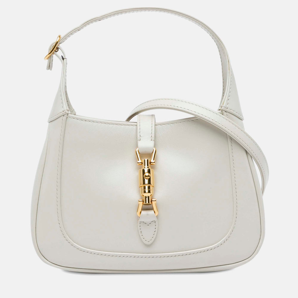 Discover the Gucci White Leather Mini Jackie 1961 Shoulder Bag, a stunning addition to designer luxury handbags. Crafted from premium white leather, this iconic bag combines elegance and practicality, making it perfect for any occasion. With its timeless design and superior quality, Gucci ensures a lasting investment. Looking to buy luxury handbags online? Use our price comparison platform to find the best deals on this exquisite piece. Trust our expertise in luxury fashion and enjoy the assurance of Gucci's renowned brand reputation. Elevate your style with the Gucci White Leather Mini Jackie 1961 Shoulder Bag today and make a statement.