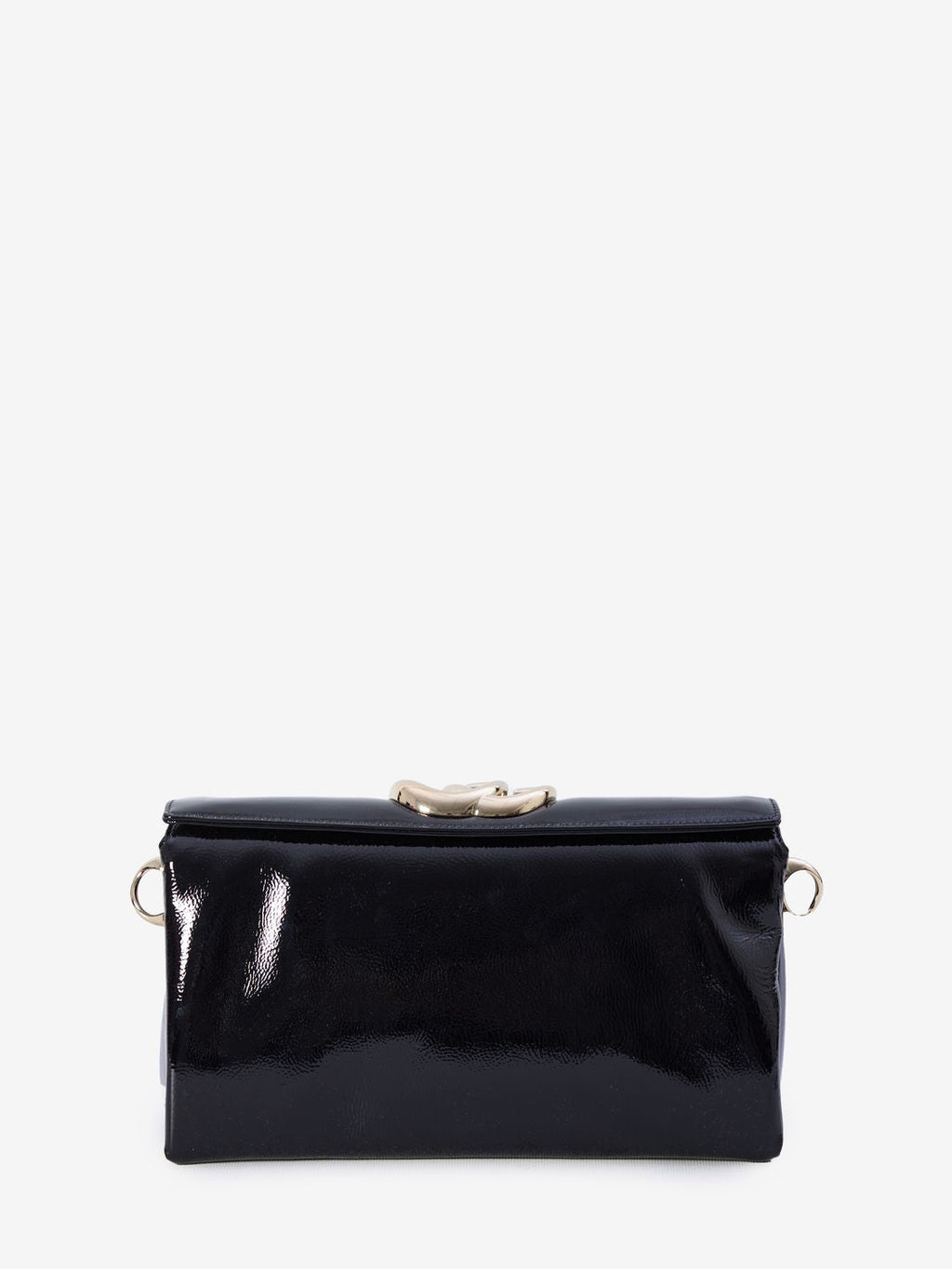A: This handbag features a compact design with a top zip closure, an adjustable shoulder strap, and an interior pocket for organization. Its versatile size makes it ideal for both day and evening wear, providing functionality without compromising style.