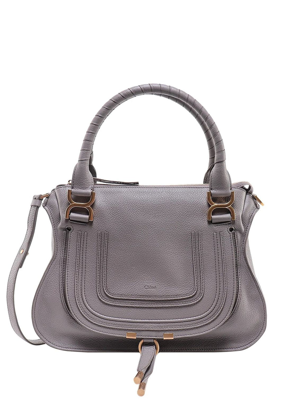 A: The Chloé Women's Marcie Double Carry Bag is crafted from high-quality leather, ensuring durability and a luxurious feel. The cashmere grey color adds a sophisticated touch, making it a versatile choice for any wardrobe.
