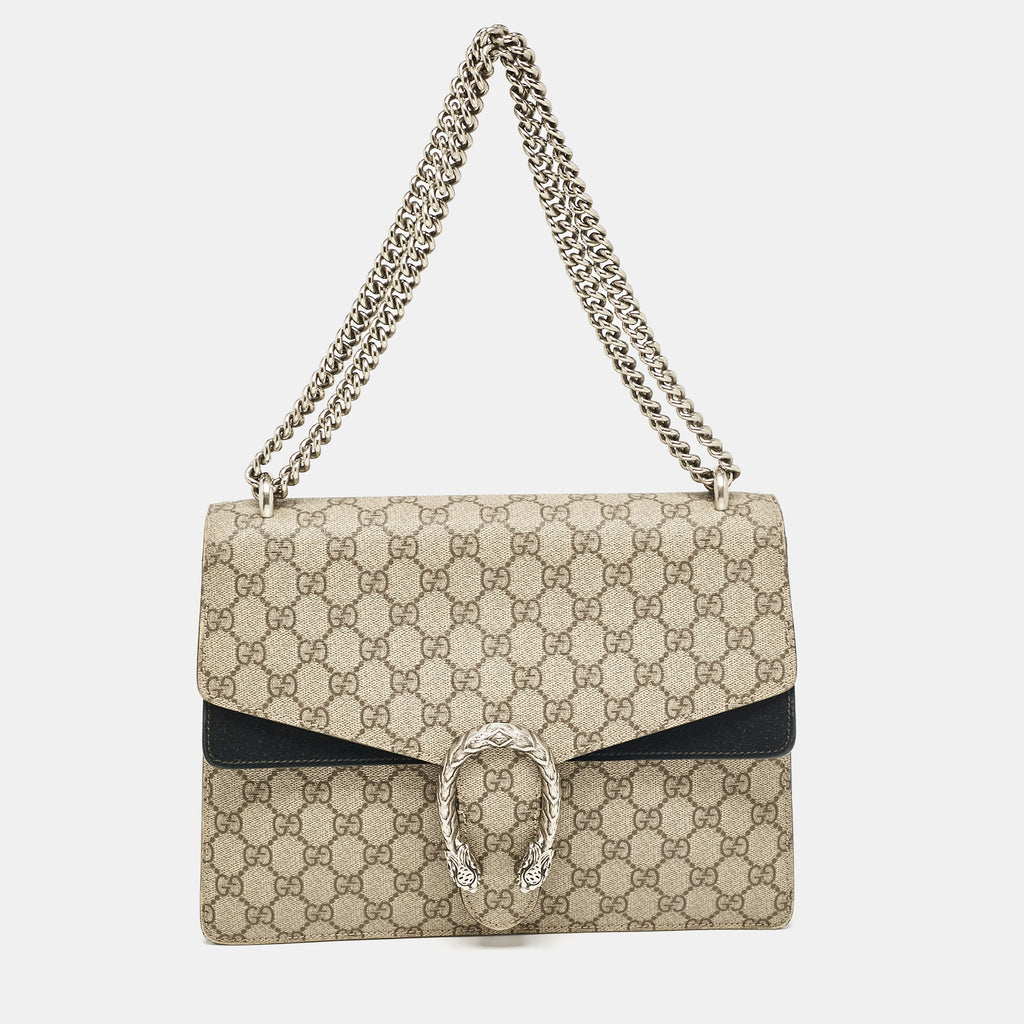 Discover the elegance of the Gucci Beige/Black GG Supreme Canvas and Suede Medium Dionysus Shoulder Bag, a perfect blend of luxury and practicality. Crafted from high-quality materials, this designer luxury handbag showcases Gucci's iconic GG Supreme design, ensuring you stand out. Whether you're looking to buy luxury handbags online or seeking a price comparison, our platform provides trusted insights and the best deals. Gucci's reputation for excellence guarantees a quality investment, making this bag a timeless addition to your collection. Explore our site for expert reviews and comparisons to find the perfect price and elevate your style with confidence.
