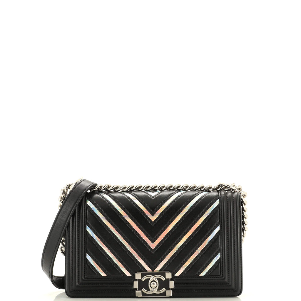 Discover the exquisite CHANEL Boy Flap Bag Chevron Lambskin with Holographic PVC Old Medium, a stunning addition to your designer luxury handbags collection. Crafted from premium lambskin, this bag offers a chic chevron design with a modern holographic twist, perfect for any occasion. Renowned for its quality and style, CHANEL stands as a symbol of luxury. Use our price comparison platform to find the best deals and buy luxury handbags online with confidence. Trust our expertise in providing reliable information about luxury brands, ensuring you make informed choices. Elevate your style with this iconic piece while enjoying the best prices available.