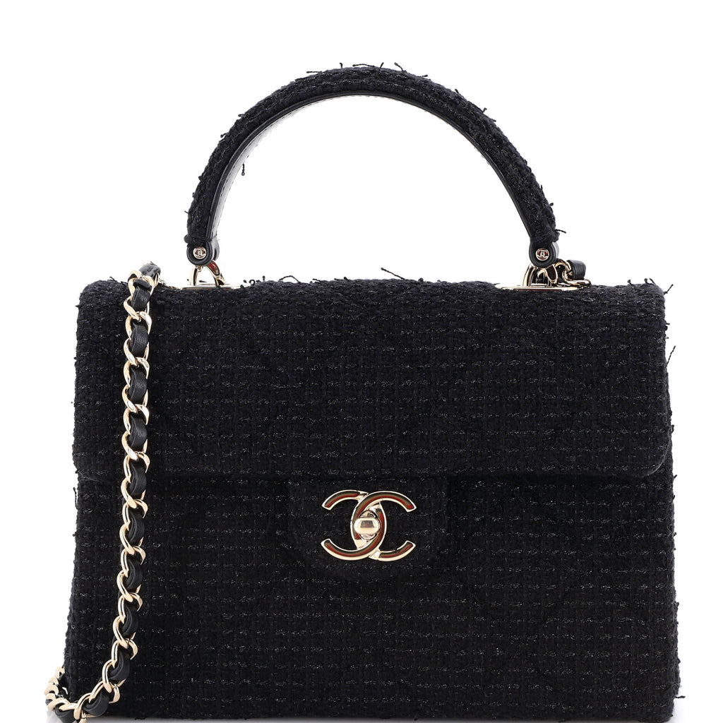CHANEL CC Top Handle Box Bag Quilted Tweed Medium