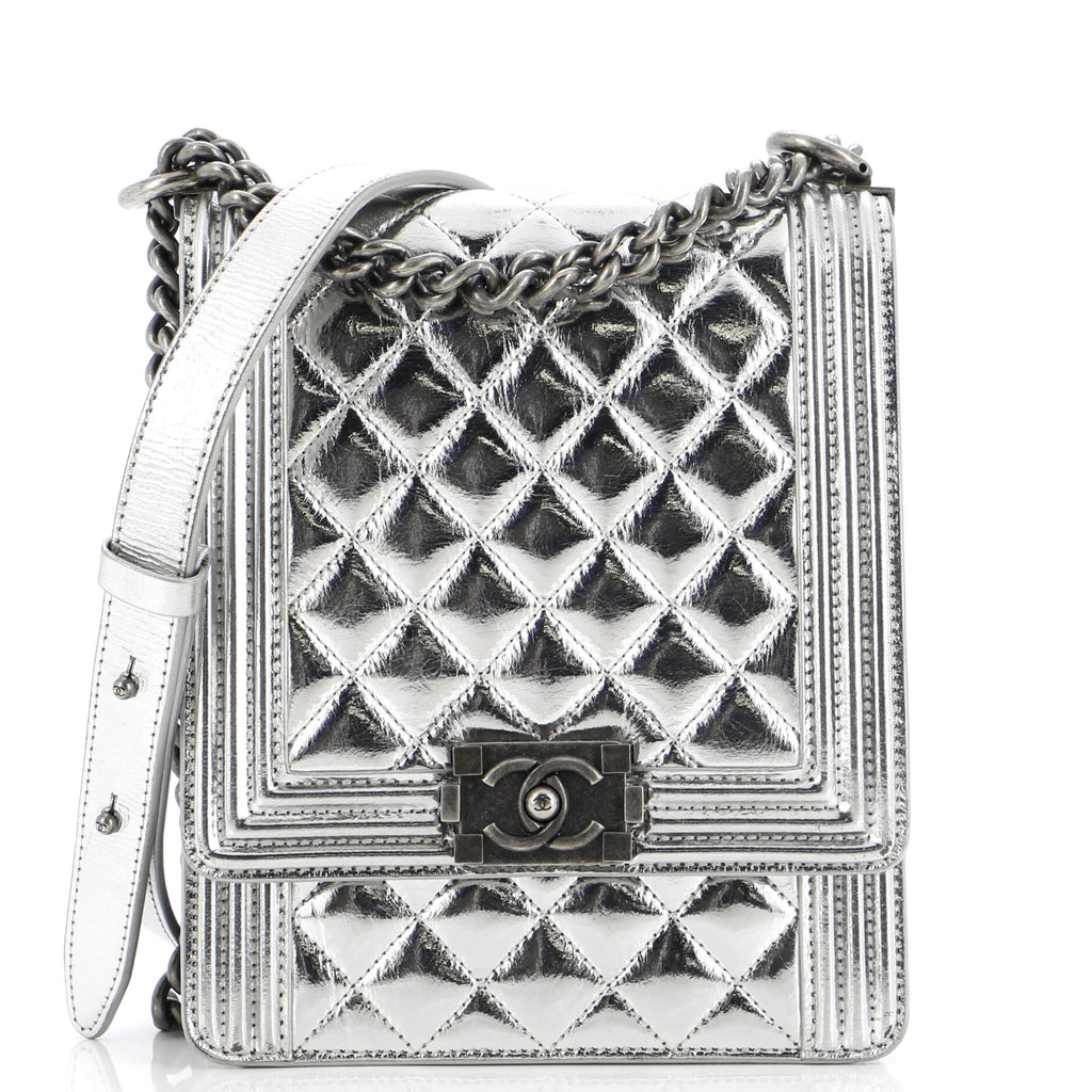 Discover the elegance of the CHANEL North South Boy Flap Bag Quilted Metallic Calfskin Small, a stunning addition to your designer luxury handbags collection. Crafted from high-quality metallic calfskin, this bag combines timeless design with modern practicality. Ideal for everyday use or special occasions, it showcases CHANEL's renowned craftsmanship and brand reputation. Use our price comparison platform to effortlessly find the best deals when you buy luxury handbags online. Enjoy the peace of mind that comes with knowing you are investing in a trusted brand. Elevate your style with this exquisite piece while making informed purchasing decisions.