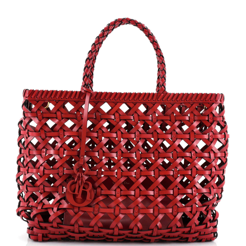 Q: What material is the Christian Dior DiorCabas Tote Cannage Woven Leather made from?