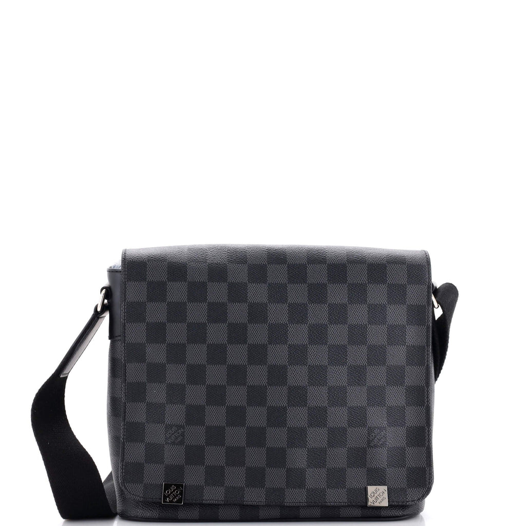 A: The Louis Vuitton District NM Messenger Bag Damier Graphite PM is crafted from high-quality coated canvas, featuring the iconic Damier Graphite pattern. This durable material is designed to withstand daily wear while maintaining a sophisticated look, making it ideal for those who appreciate designer luxury handbags.