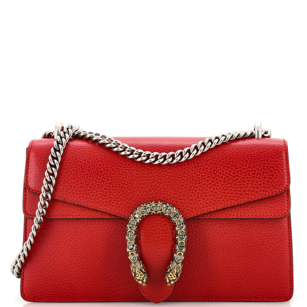 A: The Gucci Dionysus Bag Leather Small features a distinctive tiger head closure, which symbolizes strength and power. Its elegant design, combined with a modern aesthetic and functional versatility, makes it a standout piece in the luxury handbag market.