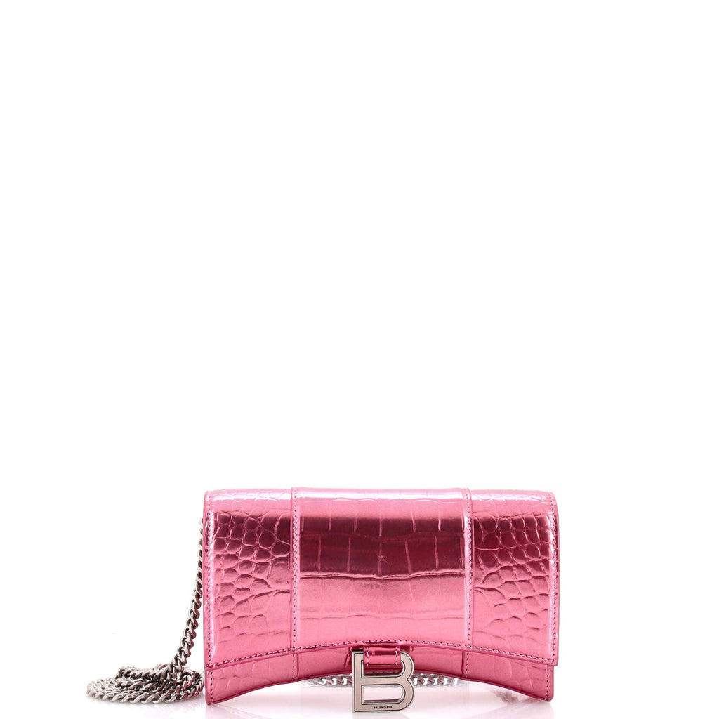 Hourglass Chain Wallet Crocodile Embossed Leather