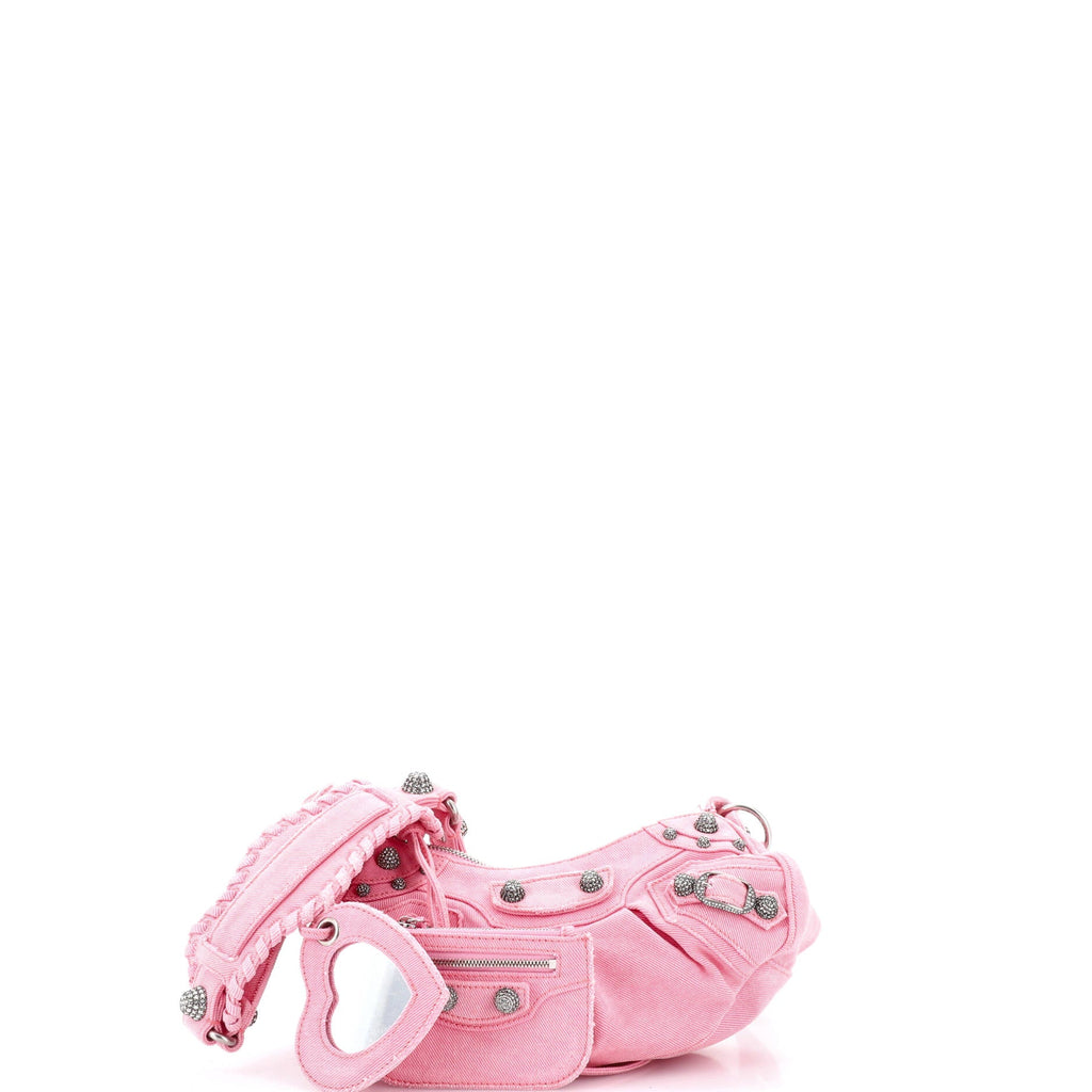 Le Cagole Giant Studs Shoulder Bag Denim with Crystals XS