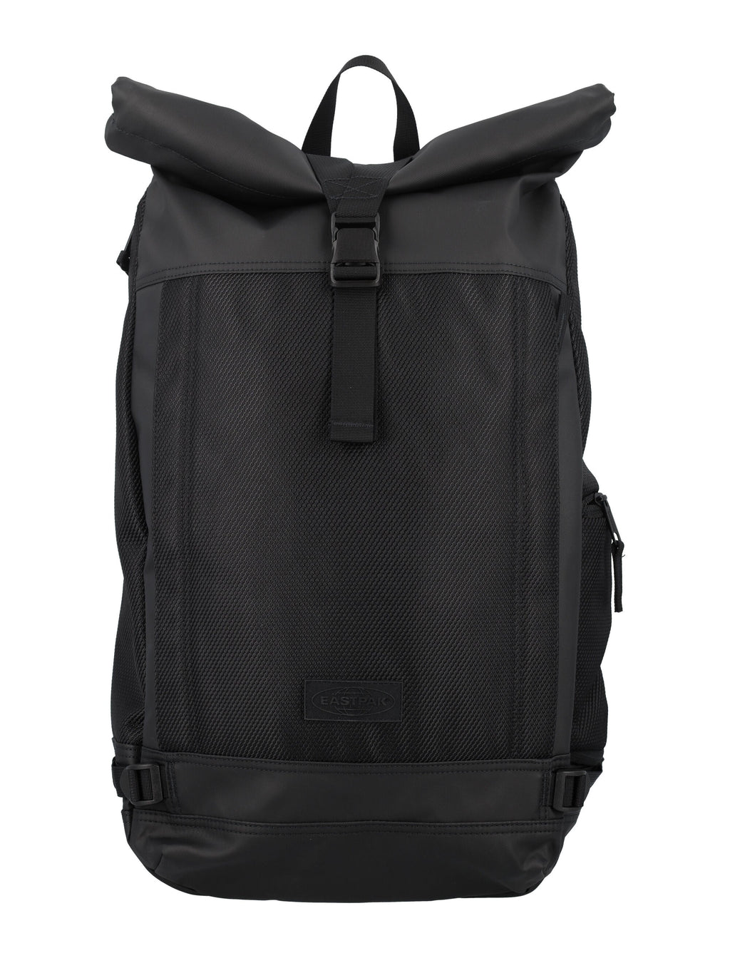 A: The Eastpak Men's Tecum Roll Backpack is crafted from high-quality, durable polyester, which offers both water resistance and longevity, making it suitable for daily use and outdoor adventures.