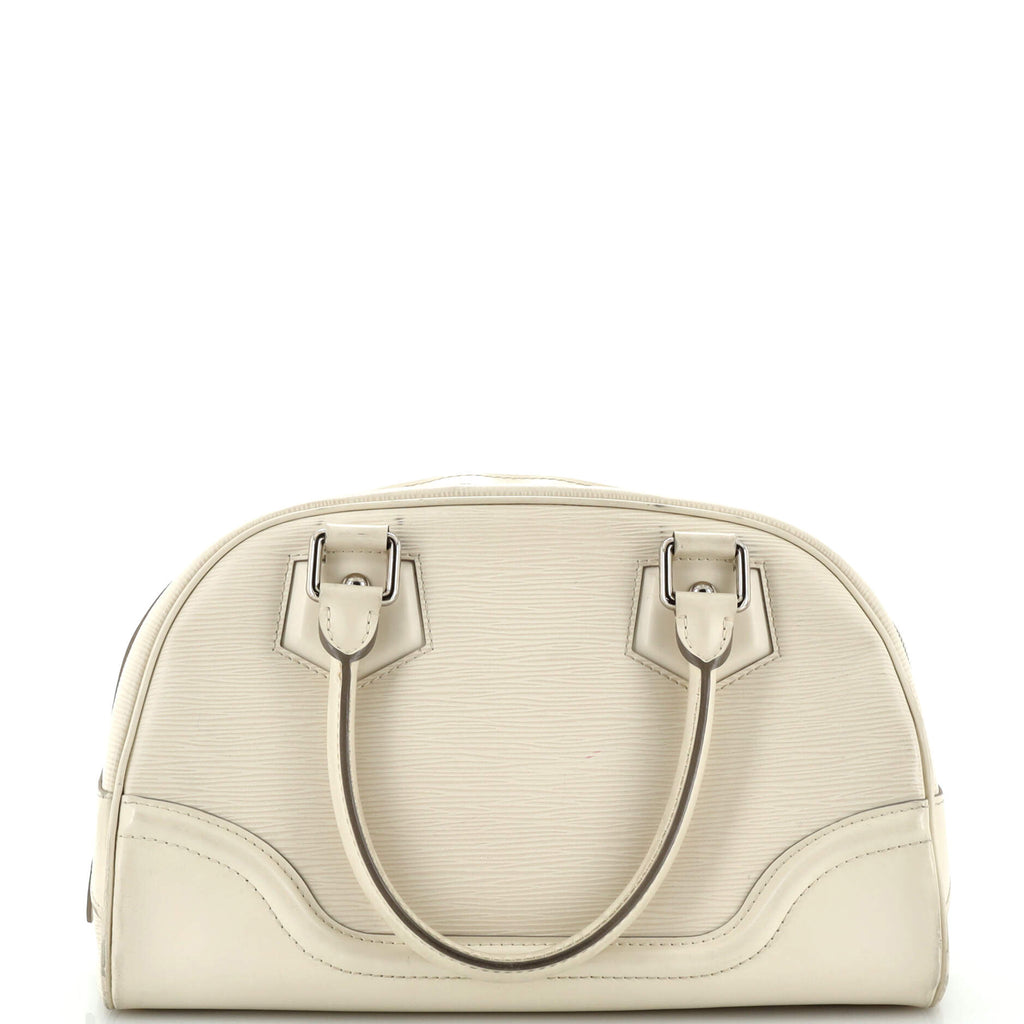 A: The Louis Vuitton Montaigne Bowling Bag Epi Leather PM is crafted from high-quality Epi leather, a durable and textured material known for its resistance to scratches and water. This ensures the bag maintains its elegance and structure over time, making it a superb choice among designer luxury handbags.