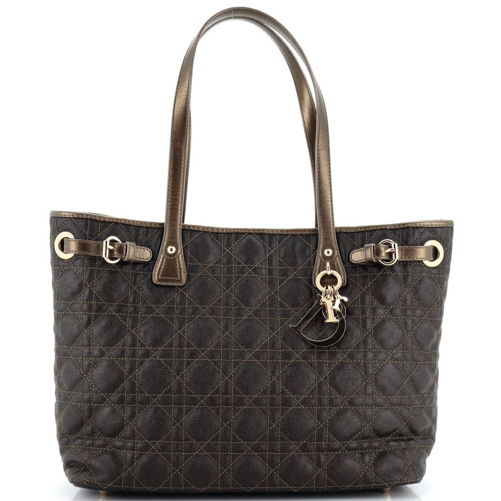 Q: What material is the Christian Dior Panarea Tote Cannage Quilt Canvas Medium made from?