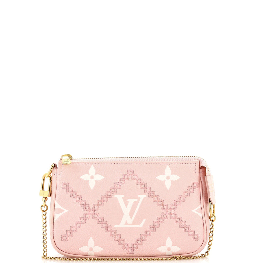 Q: What unique features does the Pochette Accessoires Monogram Empreinte Giant Broderies Mini offer?