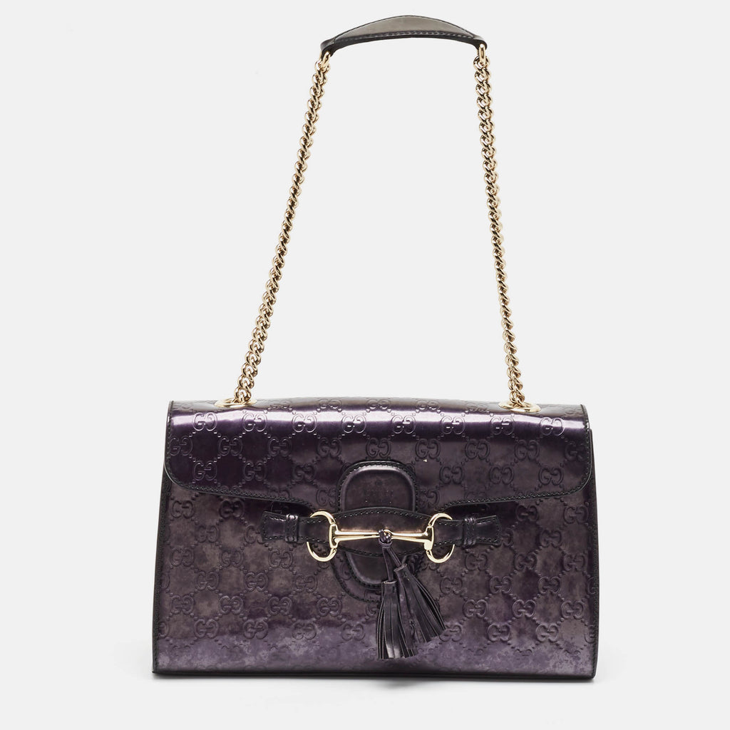 Discover the Gucci Purple Guccissima Patent Leather Medium Emily Shoulder Bag, a stunning piece from a renowned designer luxury handbags collection. Crafted with premium patent leather, this bag effortlessly combines style and practicality, making it perfect for any occasion. Enjoy the elegance of Gucci's signature design while benefiting from our price comparison platform, ensuring you find the best deals when you buy luxury handbags online. Trust in Gucci's esteemed reputation for quality and craftsmanship, and rely on our site for expert insights and reliable information. Elevate your accessory game with this exquisite handbag, designed for the fashion-forward individual.