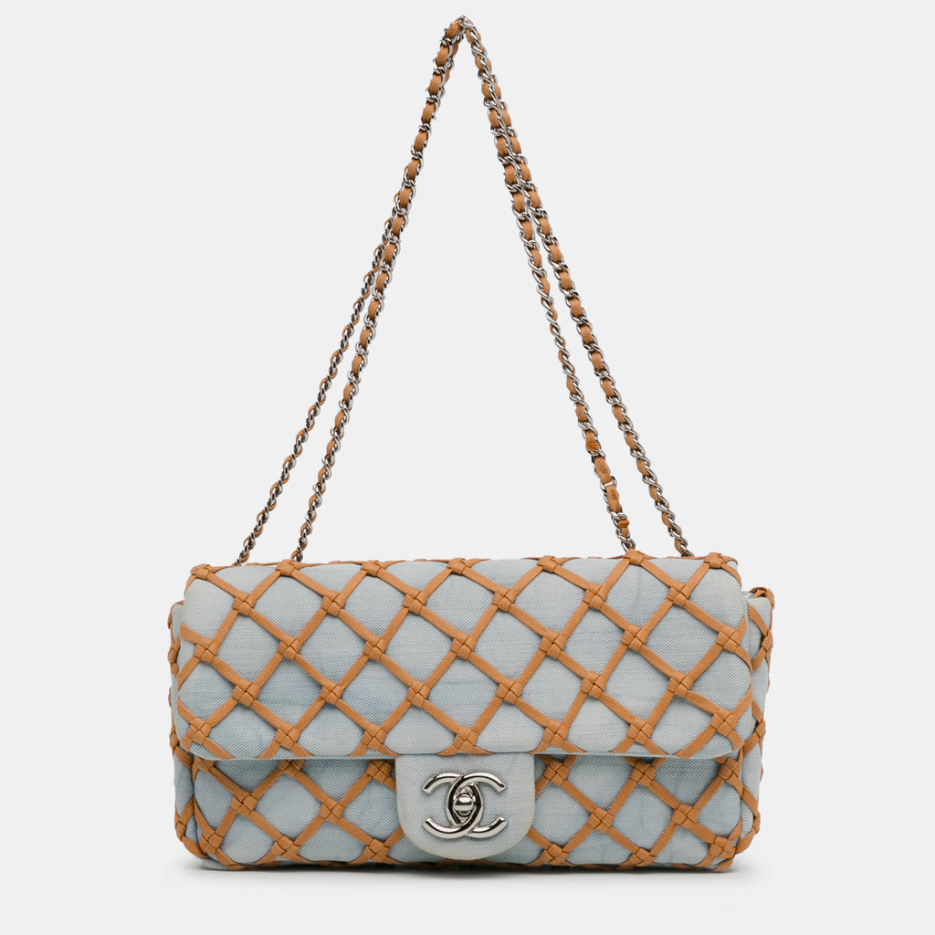 Discover the Chanel Small Denim Canebiers Net Flap, a stunning addition to your collection of designer luxury handbags. Crafted from premium materials, this bag combines chic design with practicality, making it ideal for everyday use. When you buy luxury handbags online, ensure you explore our price comparison tool to find the best deals. Trust in Chanel's esteemed reputation for quality and style, and shop confidently knowing you are making a smart investment. Our platform provides reliable information to help you make informed choices. Elevate your accessory game with this exquisite piece while enjoying the benefits of savvy shopping.
