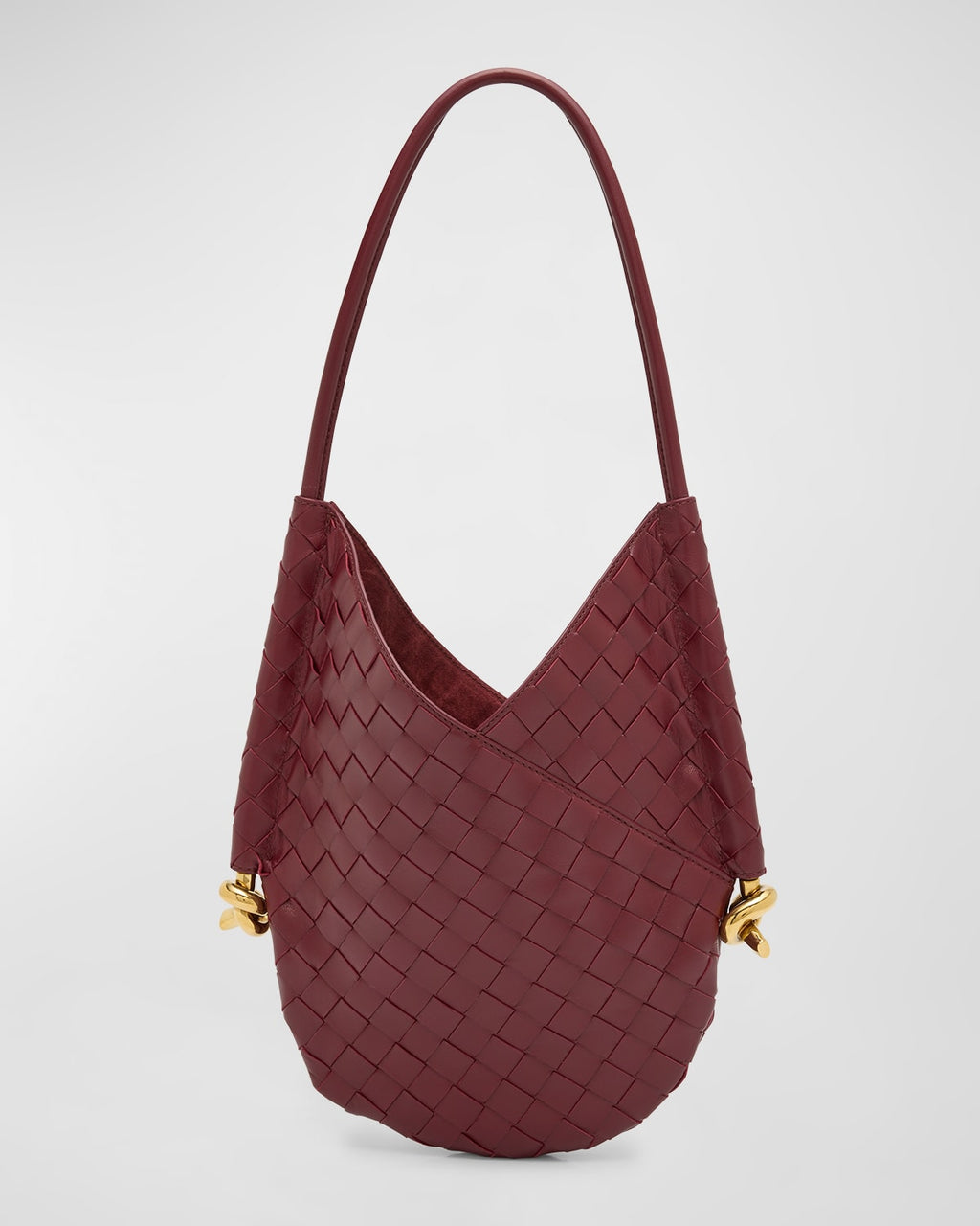 Q: What unique features does the Bottega Veneta Small Solstice Shoulder Bag offer?