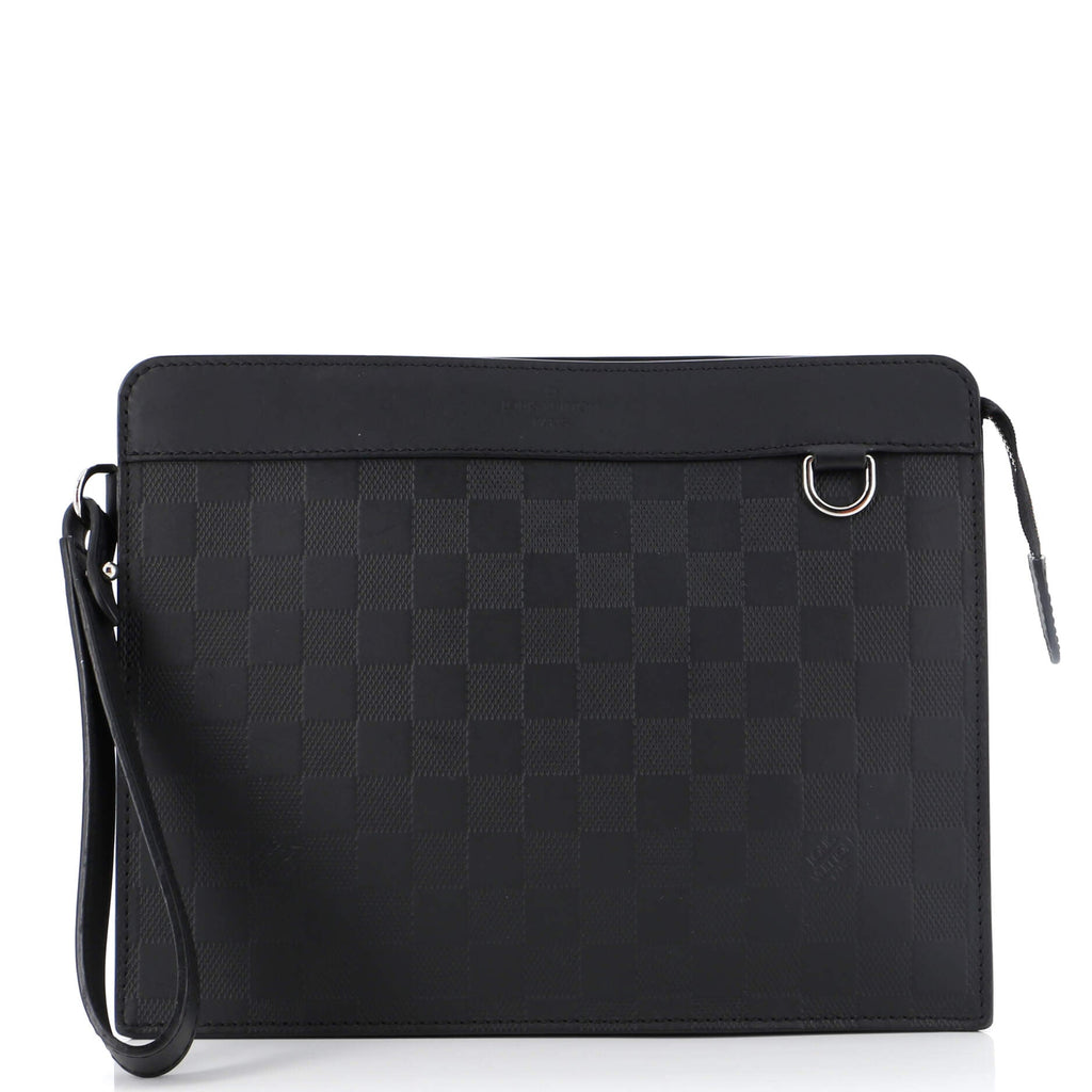 A: To maintain the beauty of the Damier Infini Leather, it is recommended to clean the pouch with a soft, dry cloth. Avoid exposure to excessive moisture and direct sunlight. For deeper cleaning, consider using a specialized leather cleaner and always test on a small area first.