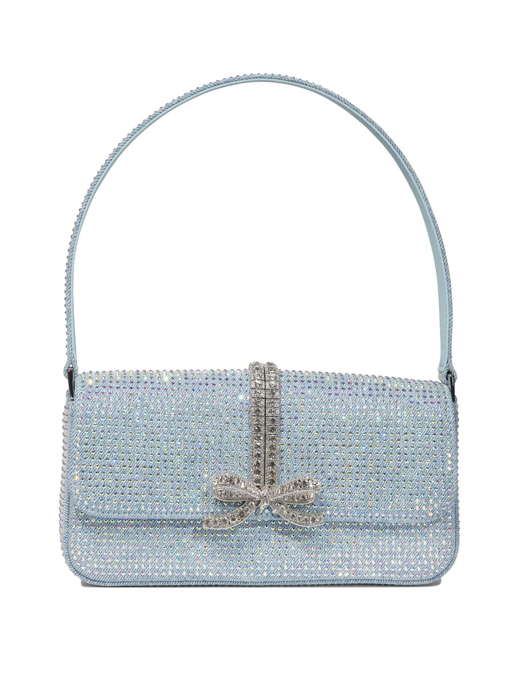 Q: What unique features does the Self-Portrait Women's Rhinestone Denim Shoulder Bag offer?